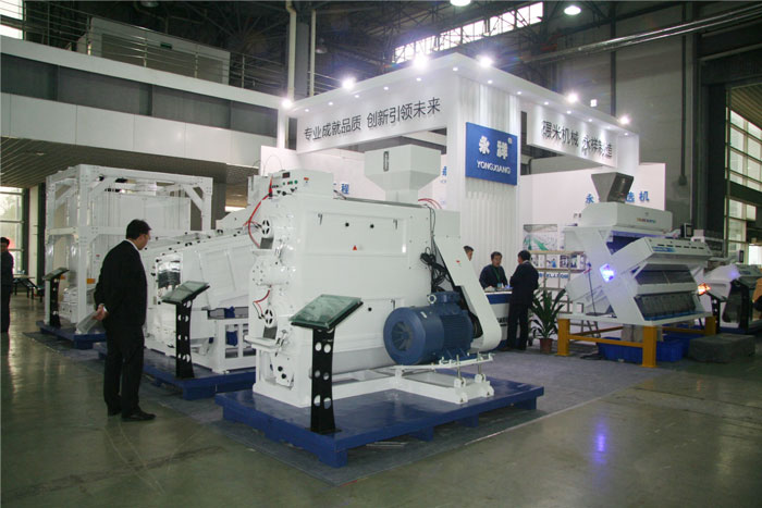 我公司精心策劃組織參加了本屆展會。公司的展區(qū)為150平方米,與日本佐竹公司、瑞士布勒公司、美亞光電的展區(qū)為鄰,展出了QR6全數字智能色選機、CM5000S×2A雙輥拋光機、MMJP120×8白米分級篩、MQCZ70×20×2雙體重力谷糙分離機、MJXH29×8A厚度分級機、空壓機等新產品,受到糧食加工企業(yè)青睞,絡繹不絕的客商蒞臨展位鑒品洽談。尤其是這次參展的QR6全數字智能大米色選機和雜糧色選機,是公司研制生產并成功推向市場的新型色選機,具有高清識別、高速分選、產量大、精度高、帶出少、性能穩(wěn)定、外觀大氣美觀的特點,充分體現出我公司高科技光電機一體化產品的實力所在,“永祥”牌MLN型聯合碾米成套設備在本屆展會糧機設備金獎榜上,獲得了金獎。