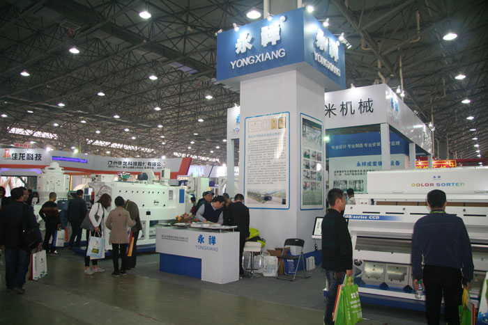 十一月四日,第十四屆中國國際糧油產(chǎn)品及設備技術(shù)展示交易會在江西南昌隆重開幕。與世界糧機巨頭瑞士布勒和日本佐竹一起,湖北永祥糧機在會展中心C館顯要位置推出全自動礱谷機、白米分級篩、平面回轉(zhuǎn)篩、長度精選機、厚度分級機、立式砂輥碾米機、立式鐵輥碾米機、大米拋光機、大米色選機等十臺專業(yè)碾米單機設備。